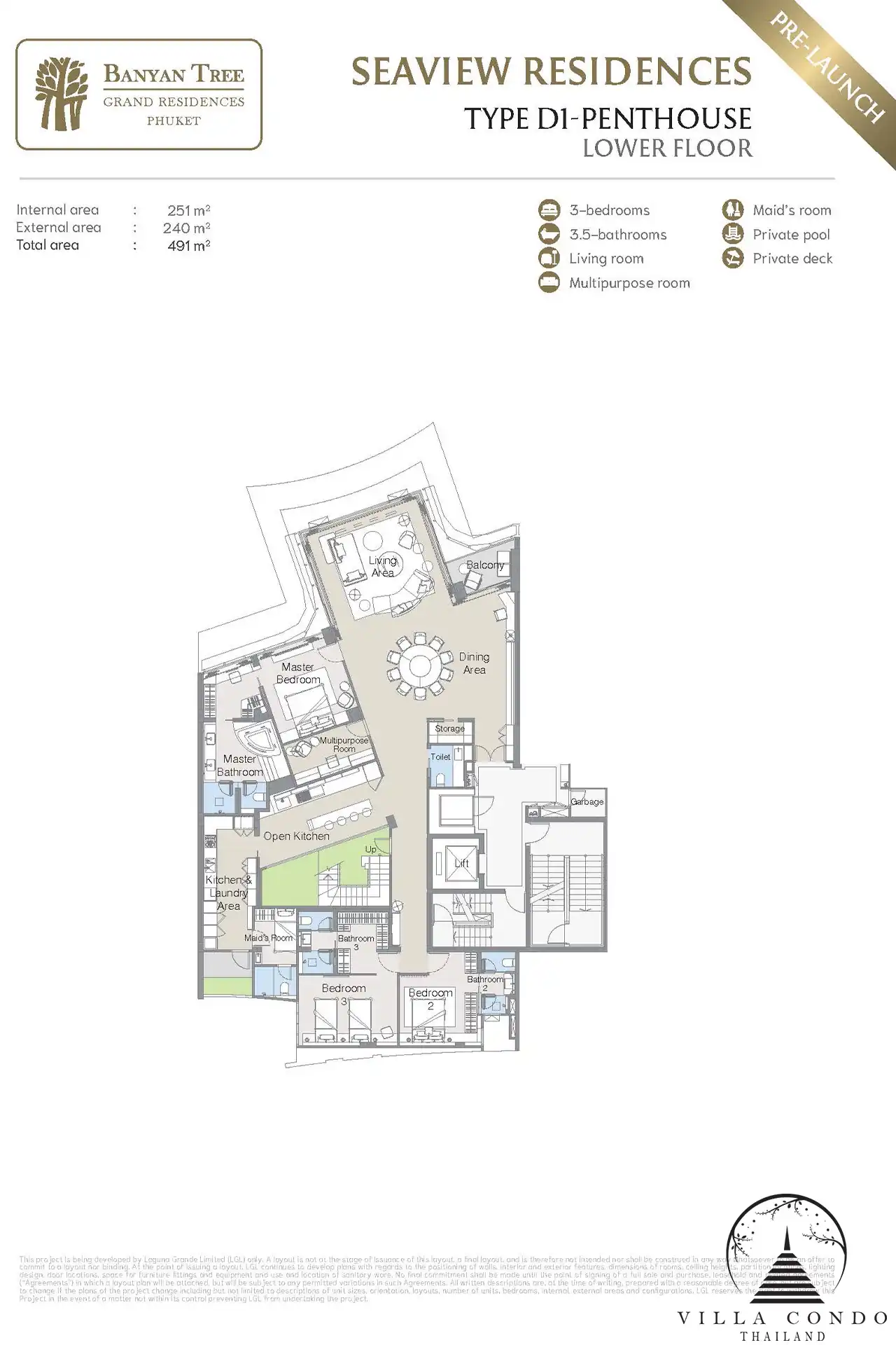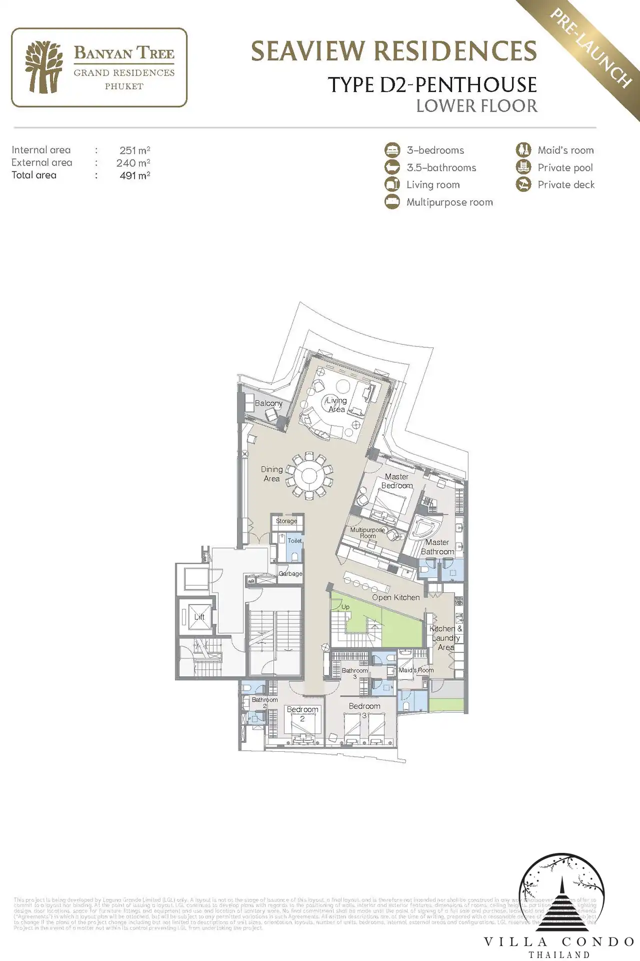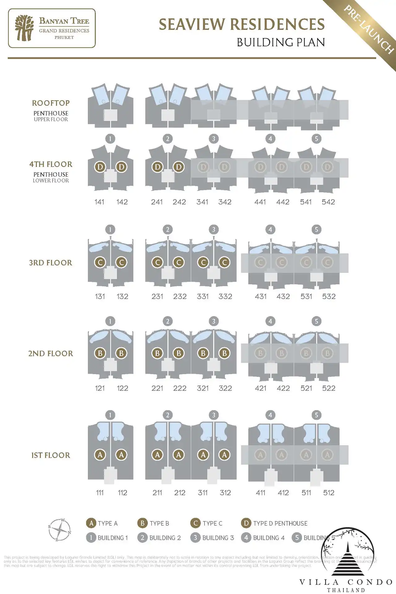 Framed by the fine white sands of Bang Tao Beach and the Andaman Sea to the west and jungle-covered mountains to the east, the Seaview Residences are discreetly situated within the private gated resort community of the world-renowned and award-winning home of multiple international events, Laguna Phuket. For those dreaming of living by the sea, the residences are perfectly positioned just moments away from the beach, sparkling sea, and verdant mountains. Residents enjoy access to a shopping village, signature restaurants, award-winning Banyan Tree spas, a wealth of luxurious facilities, dining and entertainment options, all conveniently situated within Laguna Phuket. Also set within the integrated destination resort is Laguna Golf Phuket, winner of “Thailand’s Best Golf Course” by World Golf Awards. With its sprawling spaces and contemporary design, the Seaview Residences provide complete privacy and room for relaxation, while their proximity to facilities and amenities offers an unparalleled island lifestyle for homeowners.