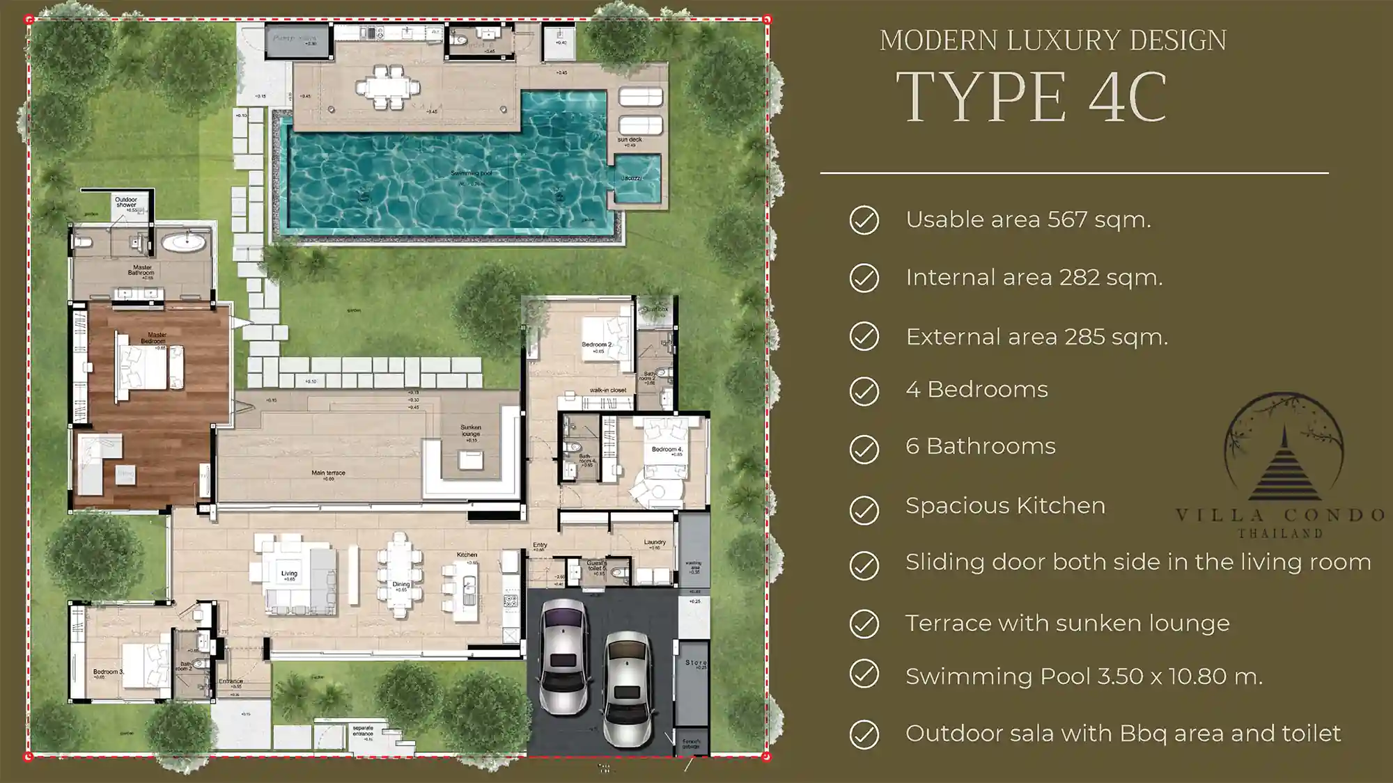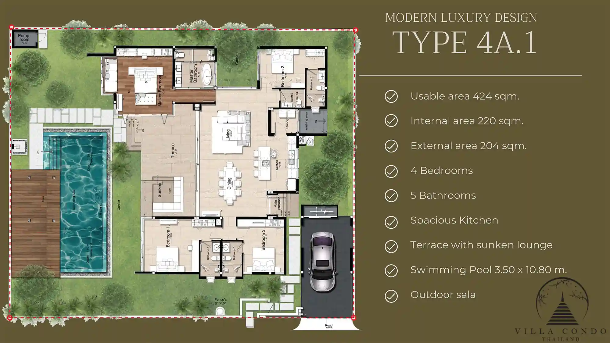 With land sizes ranging from 674 to 1,168 square meters and built-up sizes ranging from 424 to 567 square meters, these villas provide spacious and opulent living spaces. Featuring 4 bedrooms and 5-6 bathrooms, they are thoughtfully designed to cater to the needs and desires of discerning individuals and families.