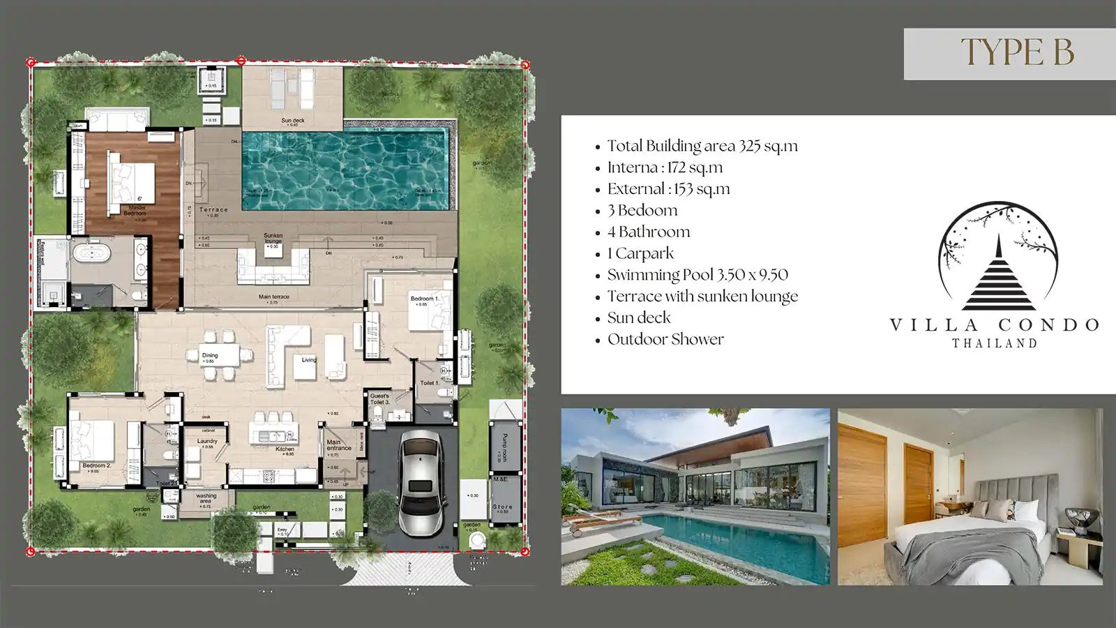 The villas at Botanica Modern Loft 2 feature three distinct types to cater to different preferences. Type A offers 3 bedrooms and 3 bathrooms, with a built-up area of 288 square meters. Type B boasts 3 bedrooms and 4 bathrooms, with a built-up area of 325 square meters. For those seeking more space, Type C presents 4 bedrooms and 4 bathrooms, with a generous built-up area ranging from 360 to 429 square meters.