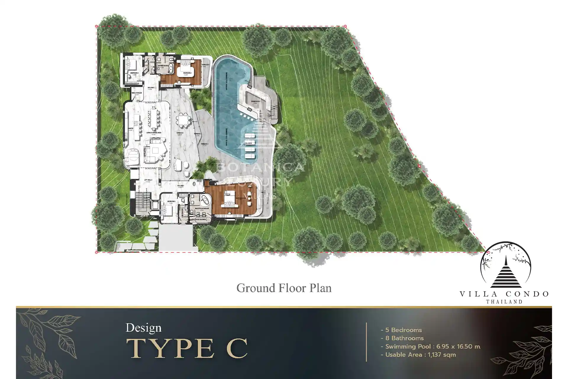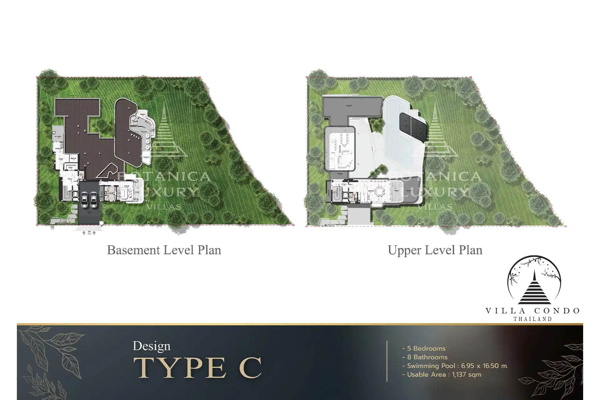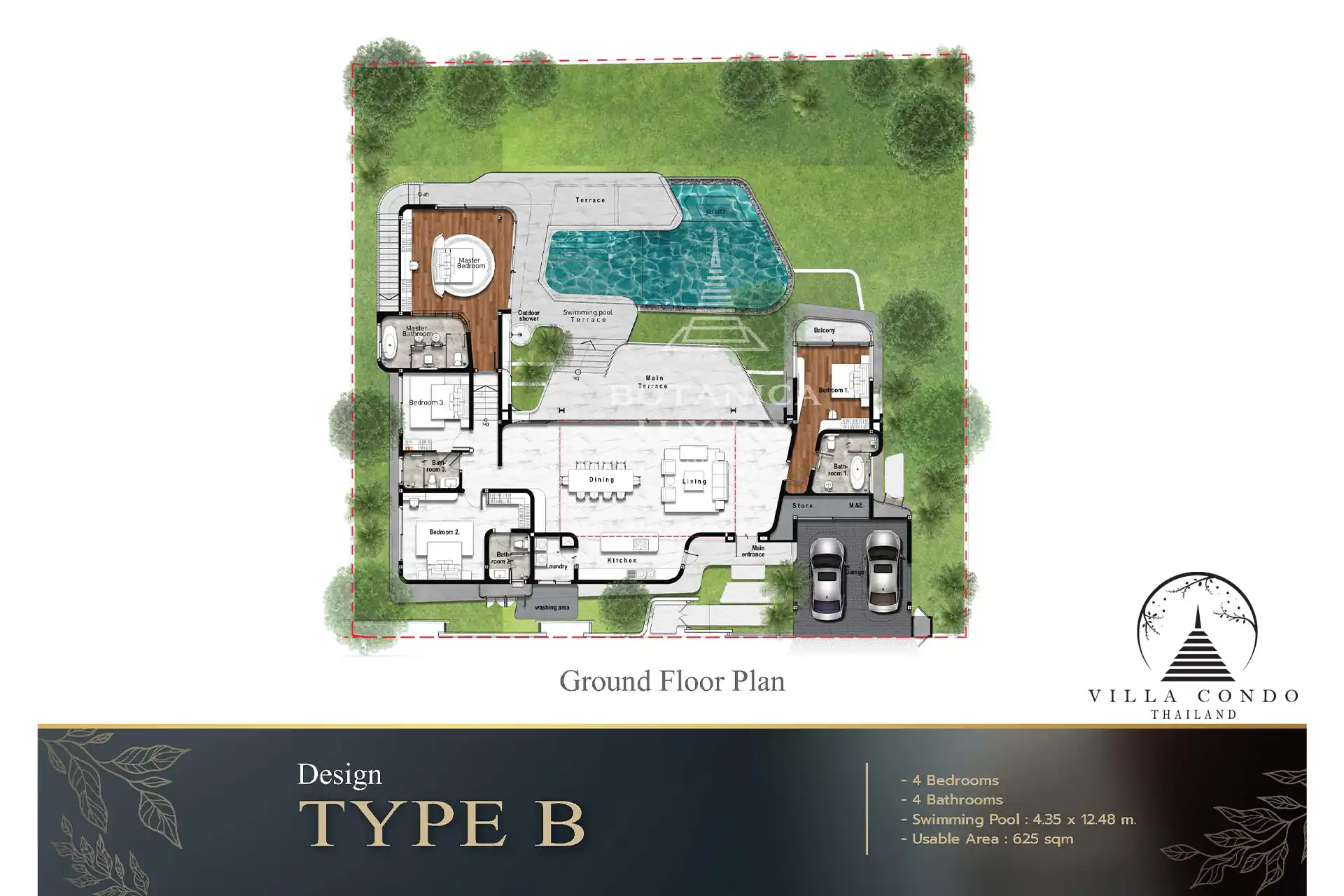 Choose from two exquisite villa options, each offering a lavish living environment. The first option is a luxurious 4-bedroom pool villa spanning an impressive 625 square meters. Priced at 63,980,000 THB, this villa provides a spacious retreat for residents. The second option is an even more expansive 5-bedroom pool villa, covering a generous 1,079 square meters, offering abundant space for relaxation and entertainment.