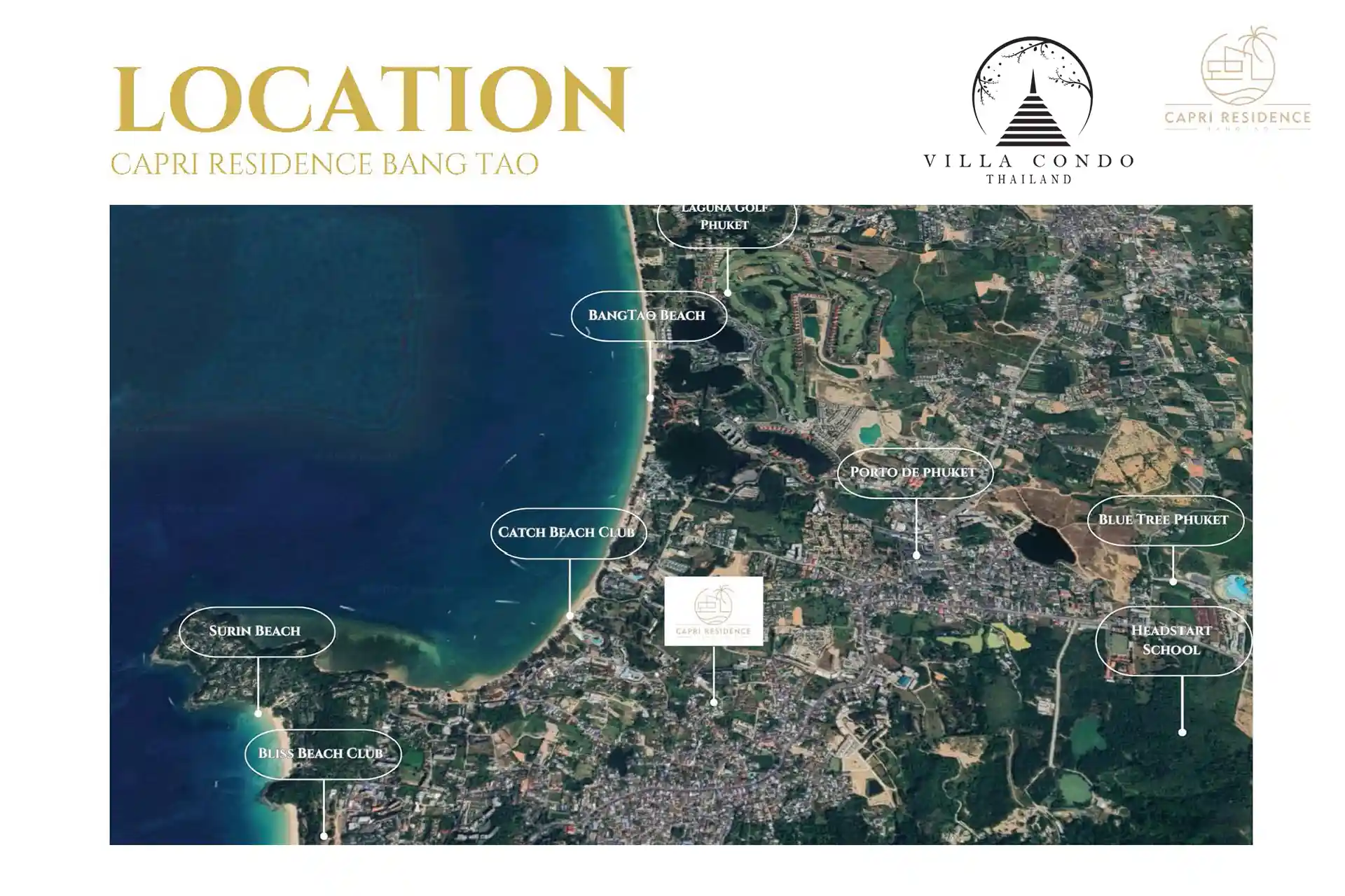Capri Residence’s strategic location near Bangtao Beach offers the perfect blend of tranquility and accessibility. Enjoy the pristine sands and azure waters of Bangtao Beach, Surin Beach, Kamala Beach, and more, all within close proximity. For shopping enthusiasts, nearby destinations such as Tesco Lotus Cherng Talay, Boat Avenue Villa Market, and Porto de Phuket offer a world of retail therapy and culinary delights just a stone’s throw away.