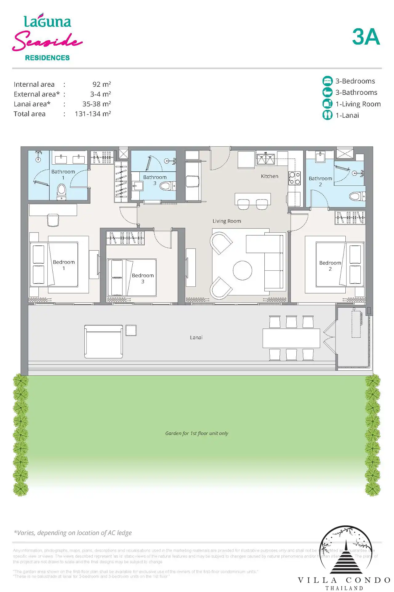 Laguna Seaside Residences features meticulously designed 1- to 3-bedroom condominium units, starting from a spacious 60 square meters. Each unit boasts panoramic views and a unique semi-outdoor lanai that enhances living space and flexibility. Residents can customize their experience with optional fit-out packages, including fully furnished options for ultimate convenience.