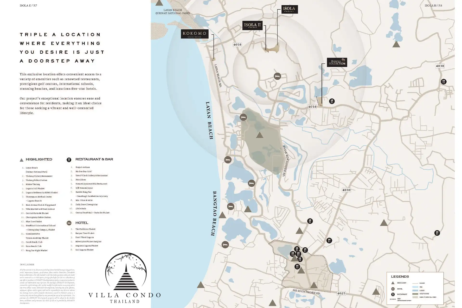 Situated on a tranquil hillside near the scenic Layan Beach, ISOLA II offers easy access to beachside restaurants, bars, and the main shopping and dining hub of Cherngtalay. The development is just a 15-minute drive from Boat Avenue Mall, Villa Market, Porto de Phuket, and the Laguna Phuket Resort Complex. Phuket International Airport is approximately 25 minutes away, ensuring seamless connectivity.
