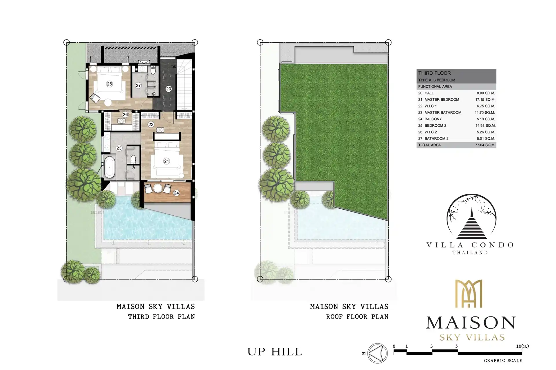 Maison Sky Villas offers a select collection of 8 exquisite villas, each spread across three floors, featuring 3 bedrooms and 4 bathrooms. These villas are crafted to perfection, boasting spacious interiors with high-end finishes that create an atmosphere of modern elegance. The rooftop terraces offer a private retreat to enjoy Phuket’s unforgettable sunsets, making it an ideal spot for relaxation and entertaining guests.