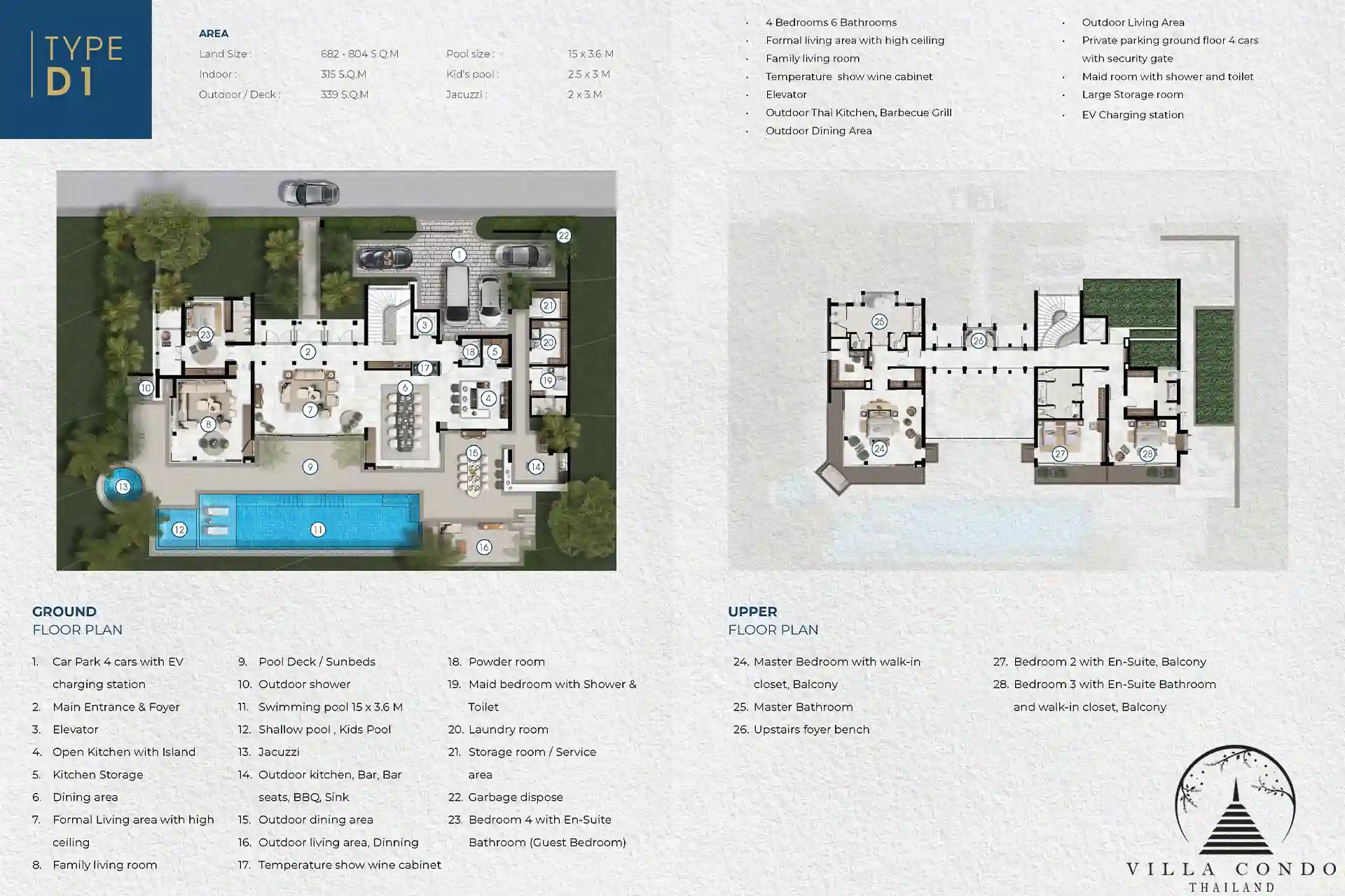 Inside the villa, the master bedroom is a sanctuary of tranquility, designed with large windows that allow natural light to flood the space and provide breathtaking views of the surrounding nature. The master bathroom complements this with a luxurious soaking tub and modern fixtures, providing a spa-like experience at home.