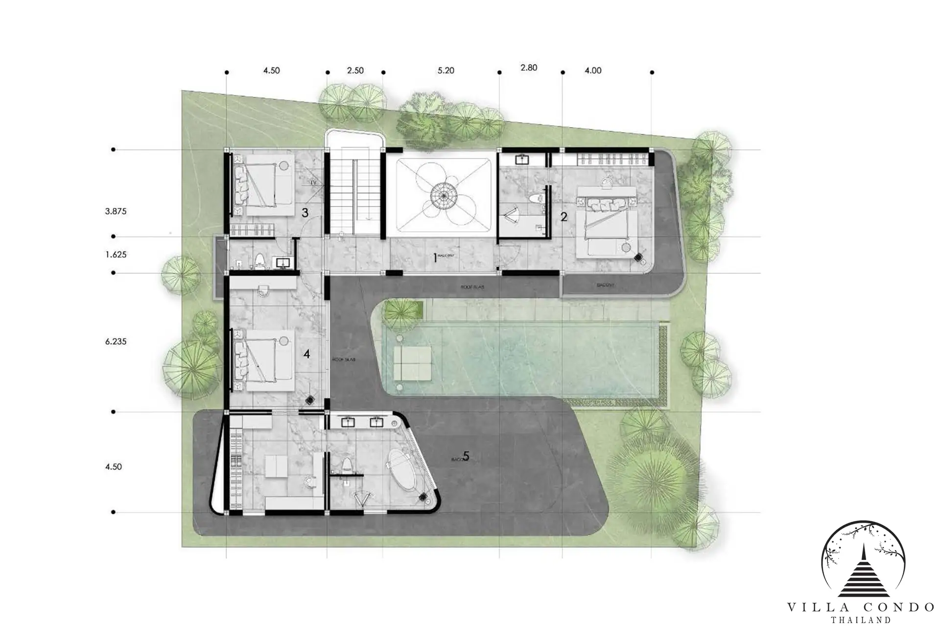 Stepping outside, residents are greeted by their own private oasis. Each villa is designed with a private 12-meter swimming pool, surrounded by spacious terraces perfect for sunbathing or hosting outdoor gatherings. The addition of a poolside sala and BBQ area further enhances the outdoor living experience, making it an ideal setting for intimate gatherings or larger celebrations.