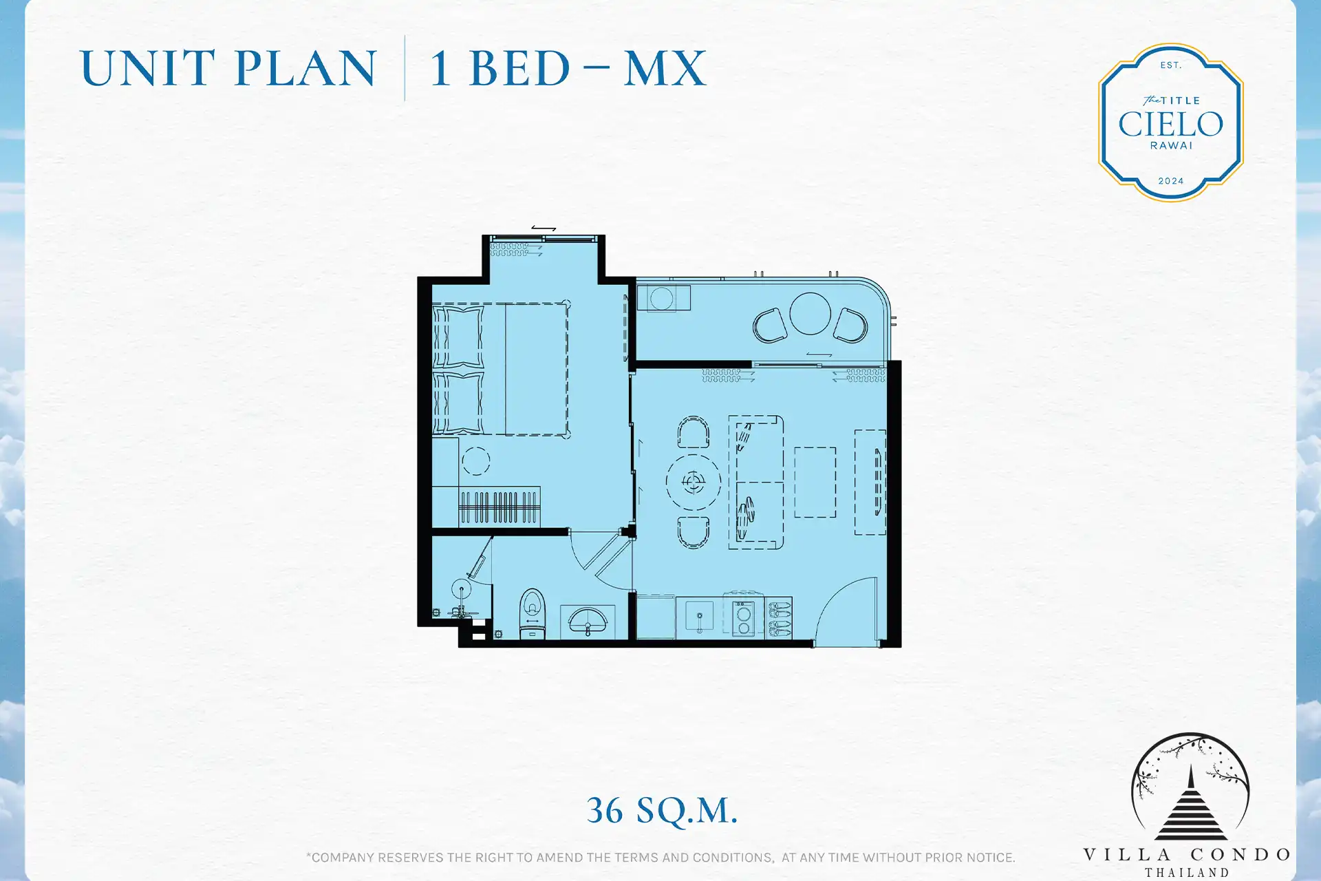 The Title Cielo Rawai captures the essence of luxury coastal living with its beautifully designed residential units and top-notch amenities. Comprising four low-rise buildings with only 171 units, this development ensures privacy and exclusivity for its residents. Each unit is crafted with meticulous attention to detail, blending Mediterranean influences with modern sophistication.