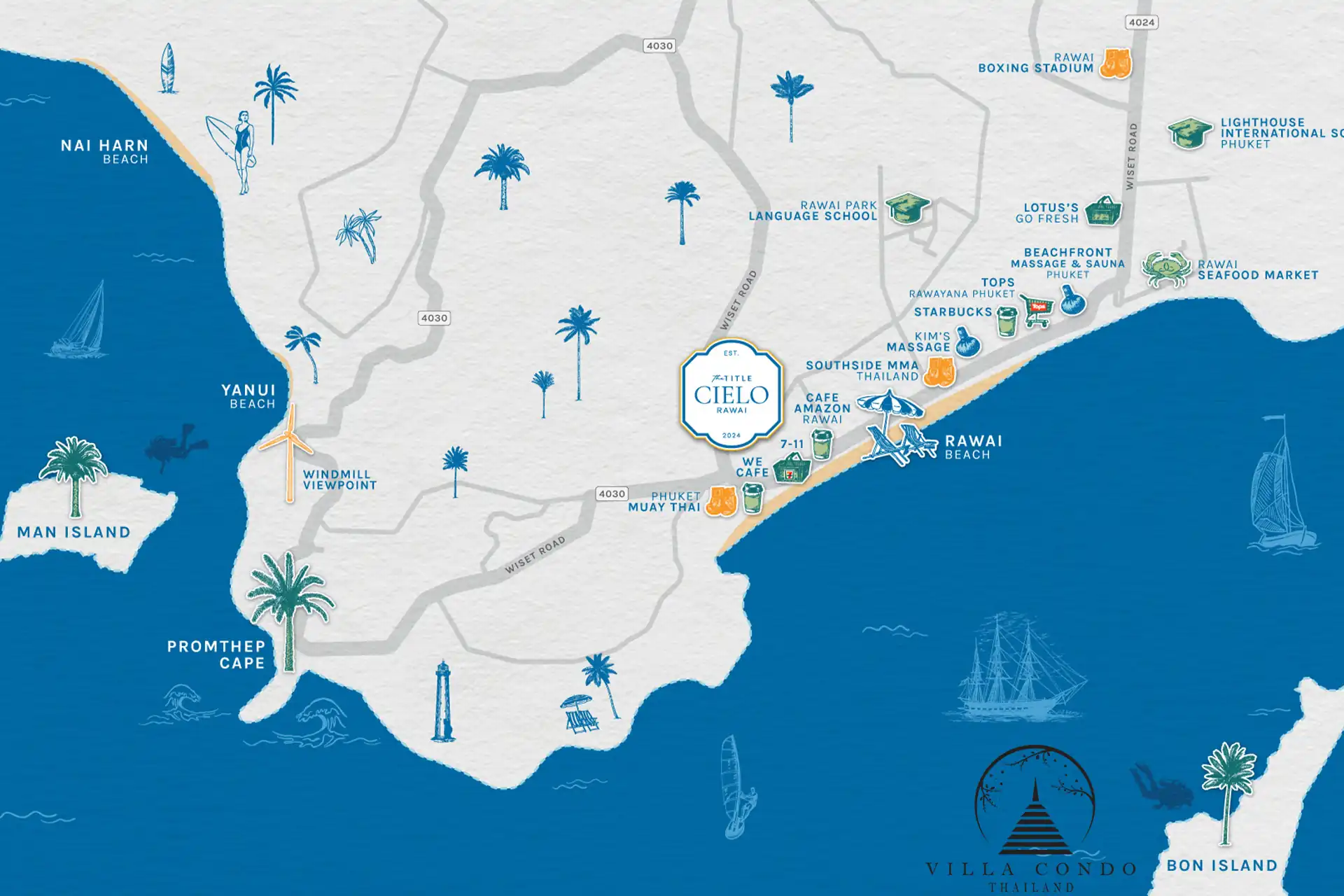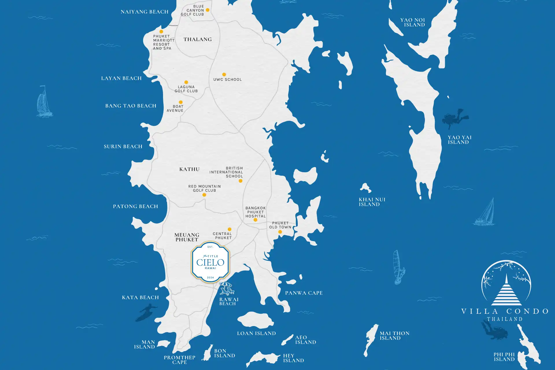 The Title Cielo Rawai is perfectly positioned in Rawai, one of Phuket’s most charming and culturally rich areas. Located close to Promthep Cape, the island’s most famous sunset viewpoint, and surrounded by stunning beaches, Rawai is the ideal destination for those seeking a laid-back, coastal lifestyle. The area is renowned for its vibrant local fisherman’s village and as a haven for seafood lovers, offering a unique taste of authentic Phuket culture.