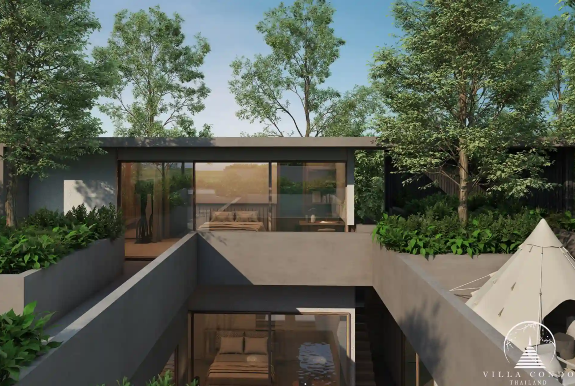 The Fern Pool Villa offers three bedrooms and three bathrooms, with all rooms connected to the swimming pool. The rooftop garden provides serene lighting throughout the day and night, while the villa’s 369 sqm layout creates a spacious yet intimate living environment surrounded by lush greenery.