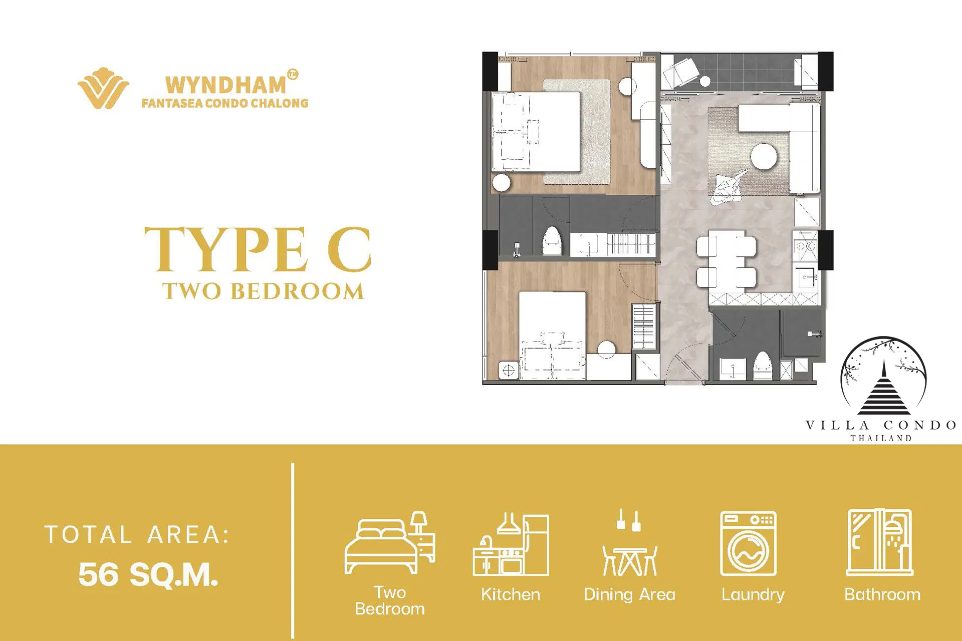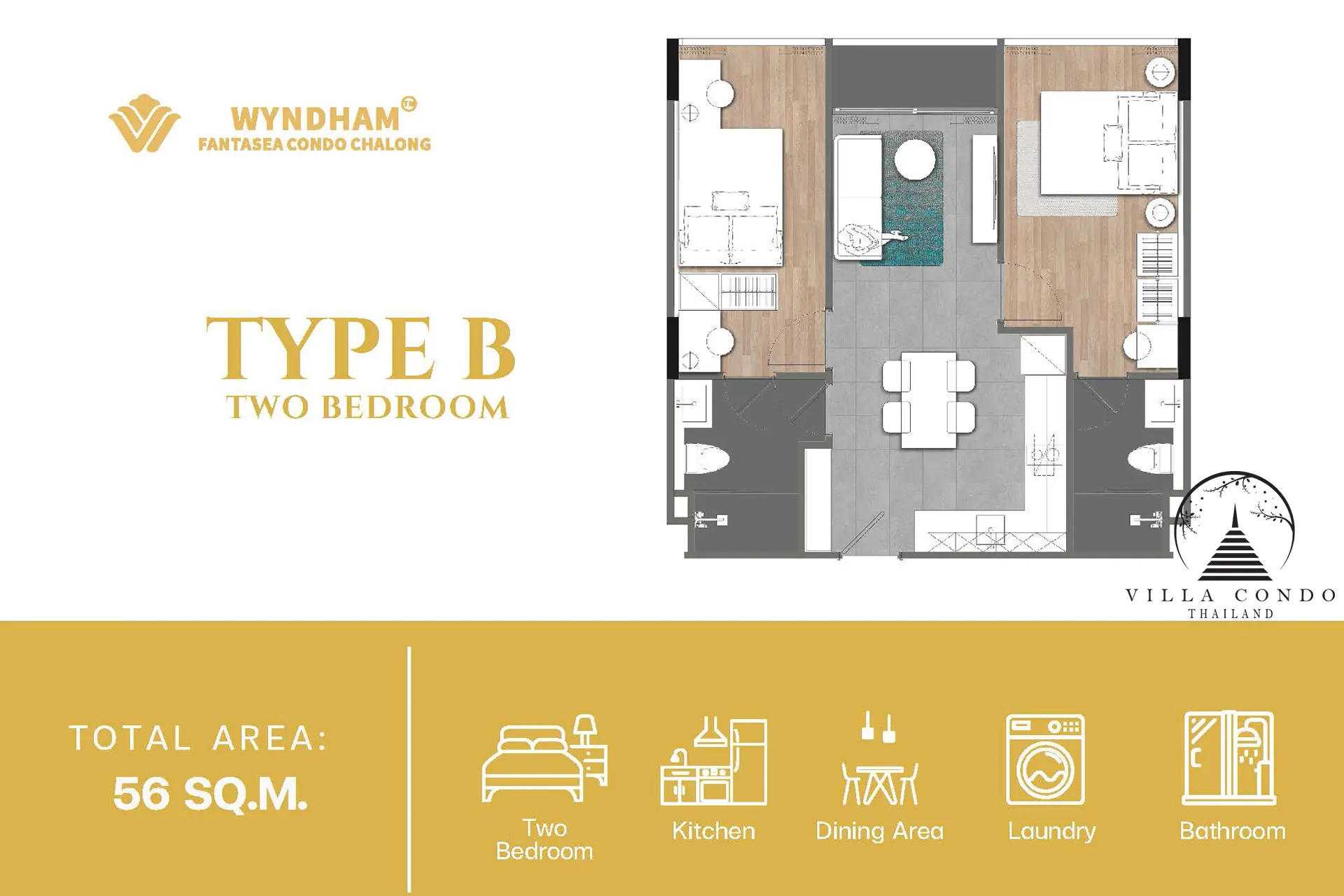 The development comprises 398 units spread across three eight-story buildings, with a total build-up area of 25,000 sqm. The stylish 2-bedroom apartments, managed by the esteemed Wyndham hotel brand, offer a range of layouts and sizes to suit different needs. Each unit features modern interiors with high-quality finishes, ensuring a comfortable and luxurious living environment.